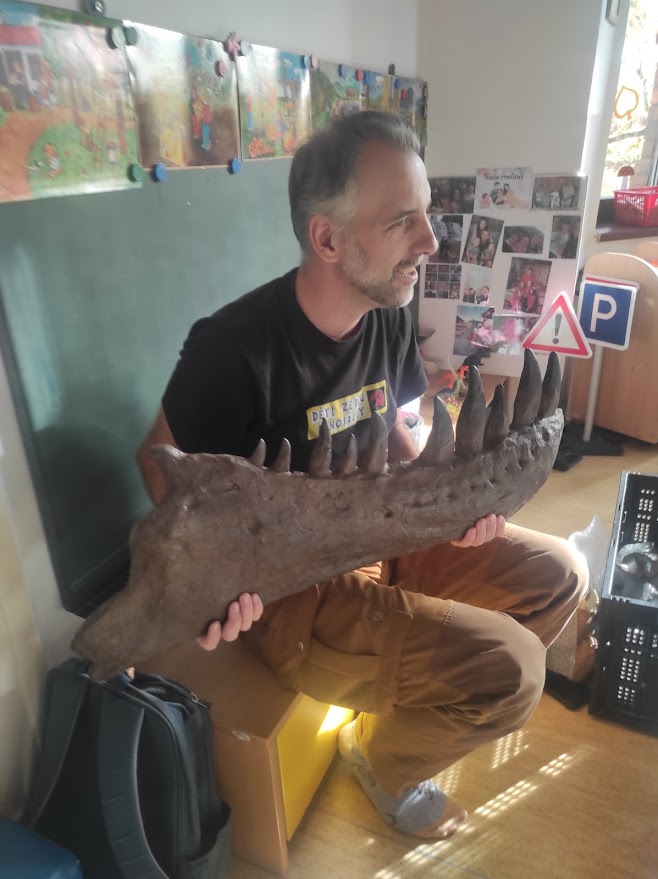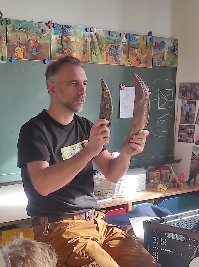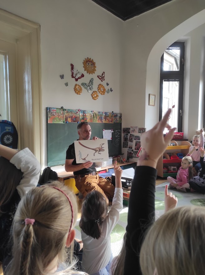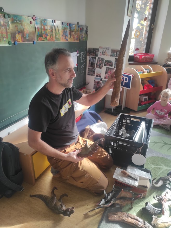 Dnes měly děti možnost vidět a slyšet přednášku o dinosaurech. Děti si mohly osahat a potěžkat pravé zkameněliny zubů a drápů skutečných dinosaurů a dozvěděly se mnoho zajímavých informacích o jejich vlastnostech a životě. Děti se na přednášku velmi těšily.