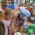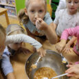 Na přelomu září a října jsme měli celý týden na jablíčkové téma. Děti zkoumaly jablíčka pod mikroskopem, ochutnávaly čerstvá i sušená jablíčka, dělaly pokusy, zadělávaly těsto, strouhaly jablíčka a nakonec upekly domácí štrůdl, na kterém si pochutnaly.