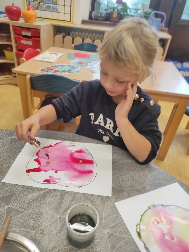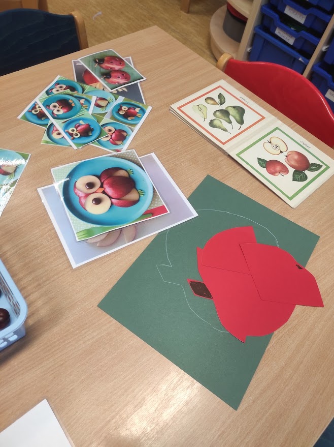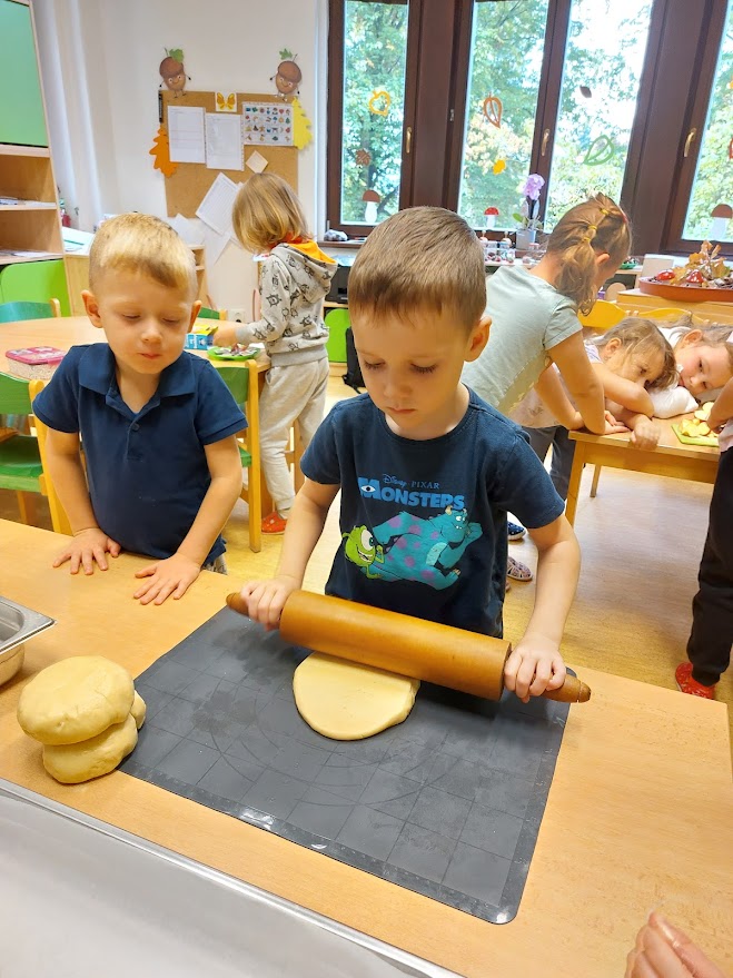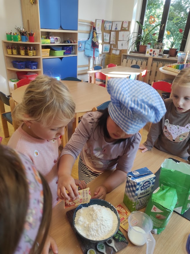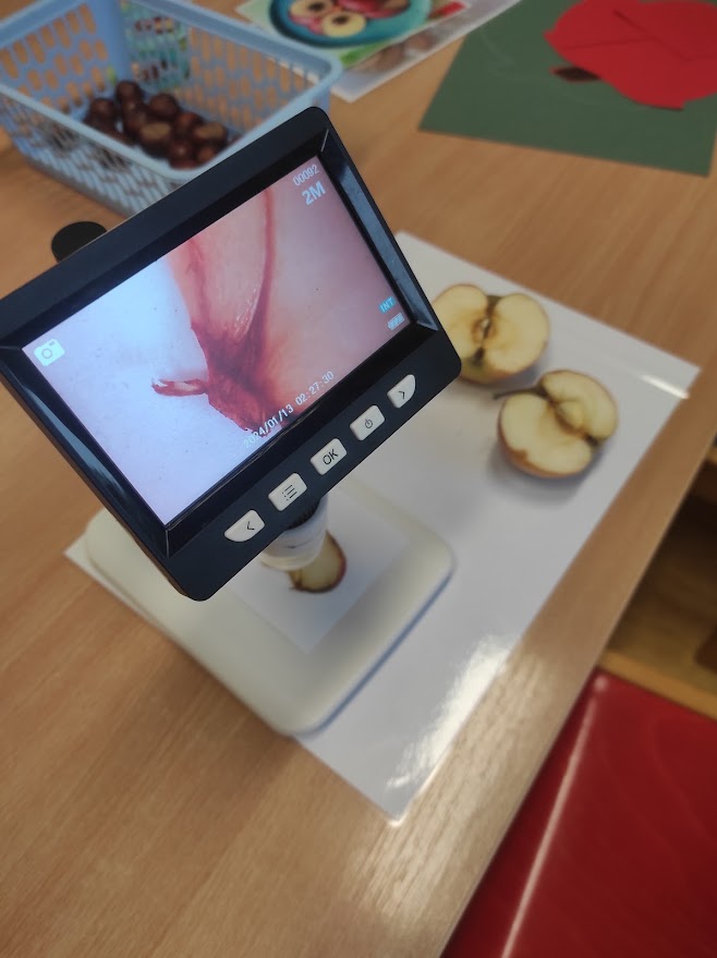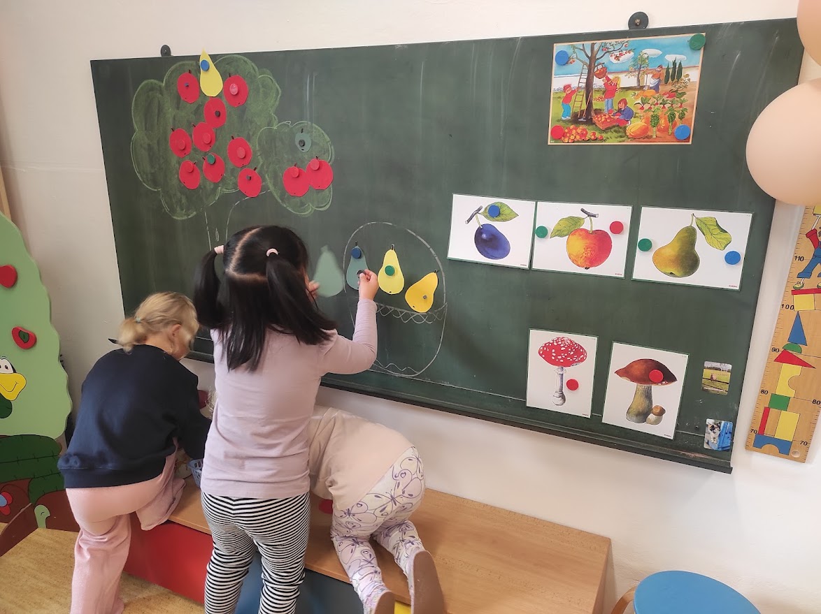 Na přelomu září a října jsme měli celý týden na jablíčkové téma. Děti zkoumaly jablíčka pod mikroskopem, ochutnávaly čerstvá i sušená jablíčka, dělaly pokusy, zadělávaly těsto, strouhaly jablíčka a nakonec upekly domácí štrůdl, na kterém si pochutnaly.
