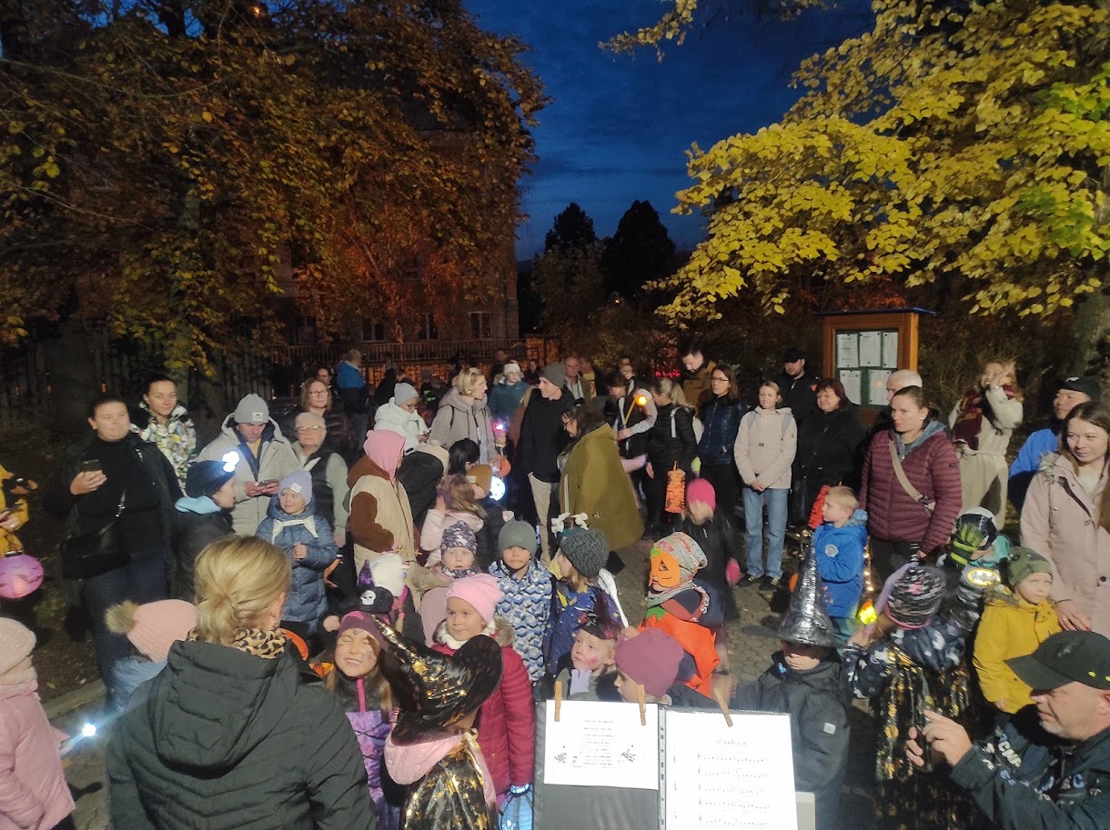 Dnes v podvečer jsme uspořádali krásný lampionový průvod s dětmi a jejich rodinami. Sešli jsme se u Luny a společným lampionovým průvodem jsme došli do školky, kde nás čekalo pokračování programu. Za doprovodu klavíru jsme si zazpívali oblíbené podzimní písně a básničkou uspali broučky. Zahrada byla vyzdobená nádhernými dýněmi od rodičů, světýlky a tajemnými úkoly skrývajícími se po zahradě. Po vyluštění úkolů a tajenky si děti vyzvedly drobné odměny a posilnili se teplým čajem se štrůdlem a vánočkou od našich kuchařek. Všem děkujeme za spolupráci a krásný večer.