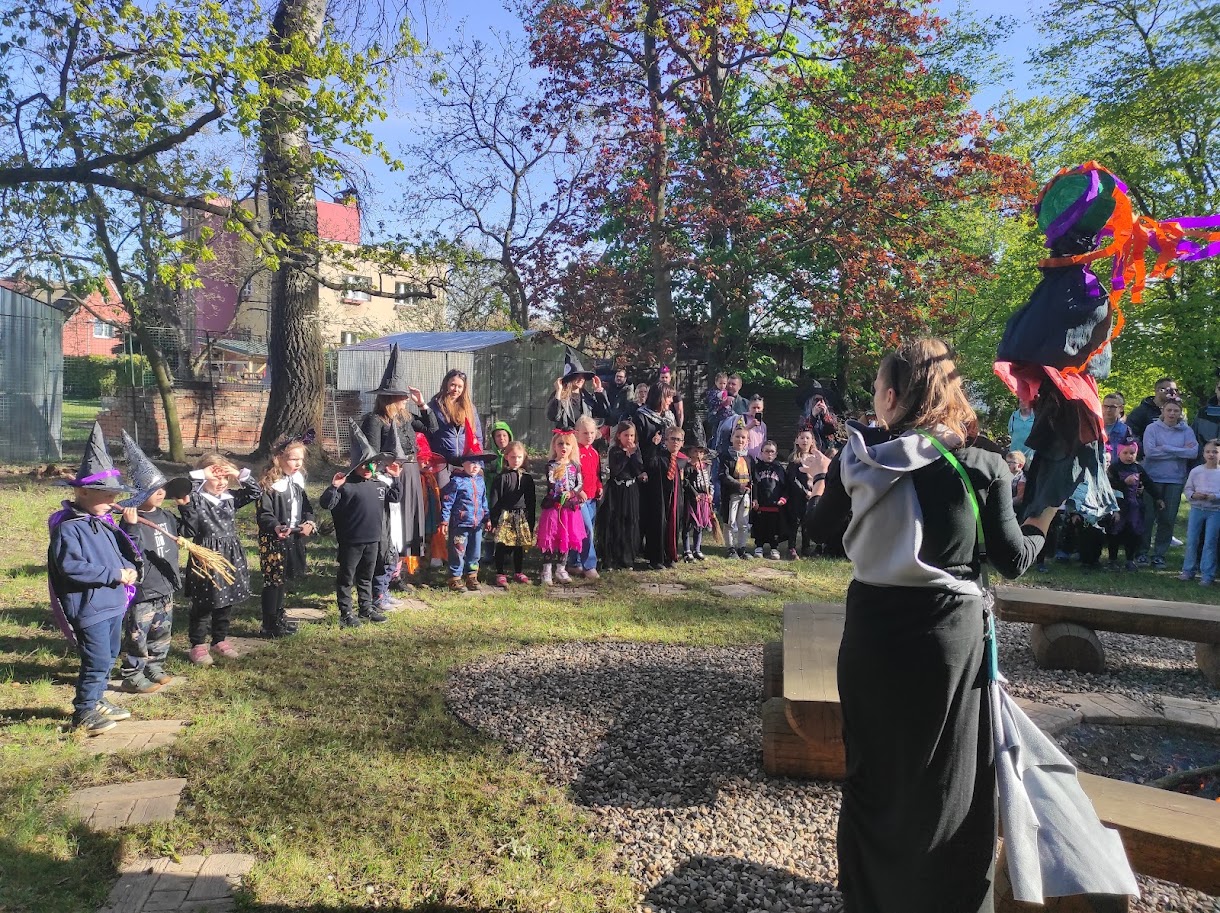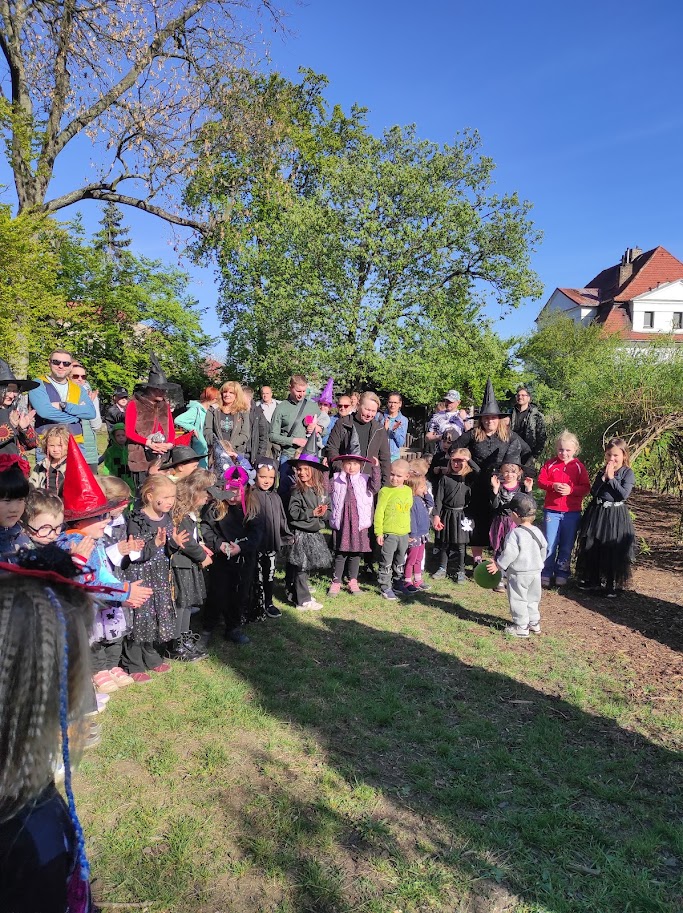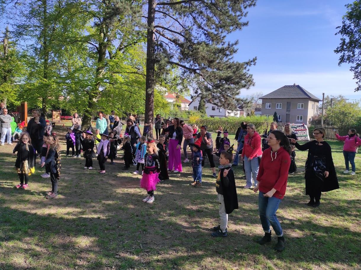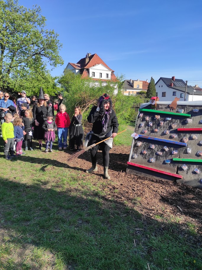 Dnešního odpoledne jsme na školní zahradě oslavili tradiční svátek Pálení čarodějnic. Rodiče i přátelé školky přicházeli společně s dětmi do tematicky vyzdobeného prostředí plného čarodějnických kulis, papírových koček, netopýrů a pavouků. Program byl zahájen symbolickým spálením papírové čarodějnice, která představovala odchod zimy a všeho zlého. Následně si děti společně zatančily a vydaly se k perníkové chaloupce, kde na ně čekala ježibaba. Po zazpívání písničky si děti mohly za odměnu odnést perníček. Poté již následovala volná zábava v podobě čarodějnických úkolů a stezky. Nechybělo ani tradiční opékání buřtů. Akce se velmi vydařila, těšila se hojné účasti a příjemnou atmosféru podpořilo i krásné slunečné počasí.