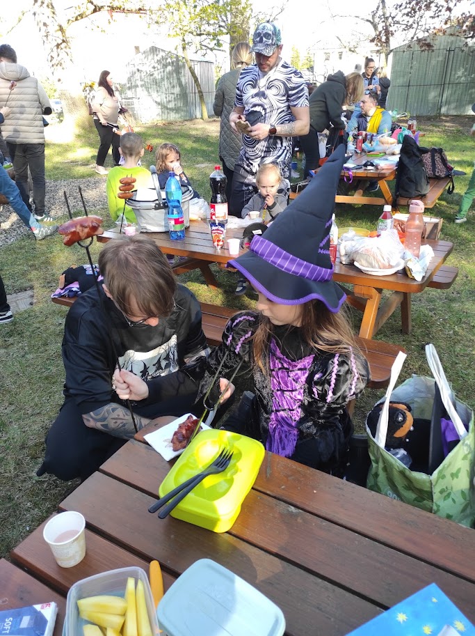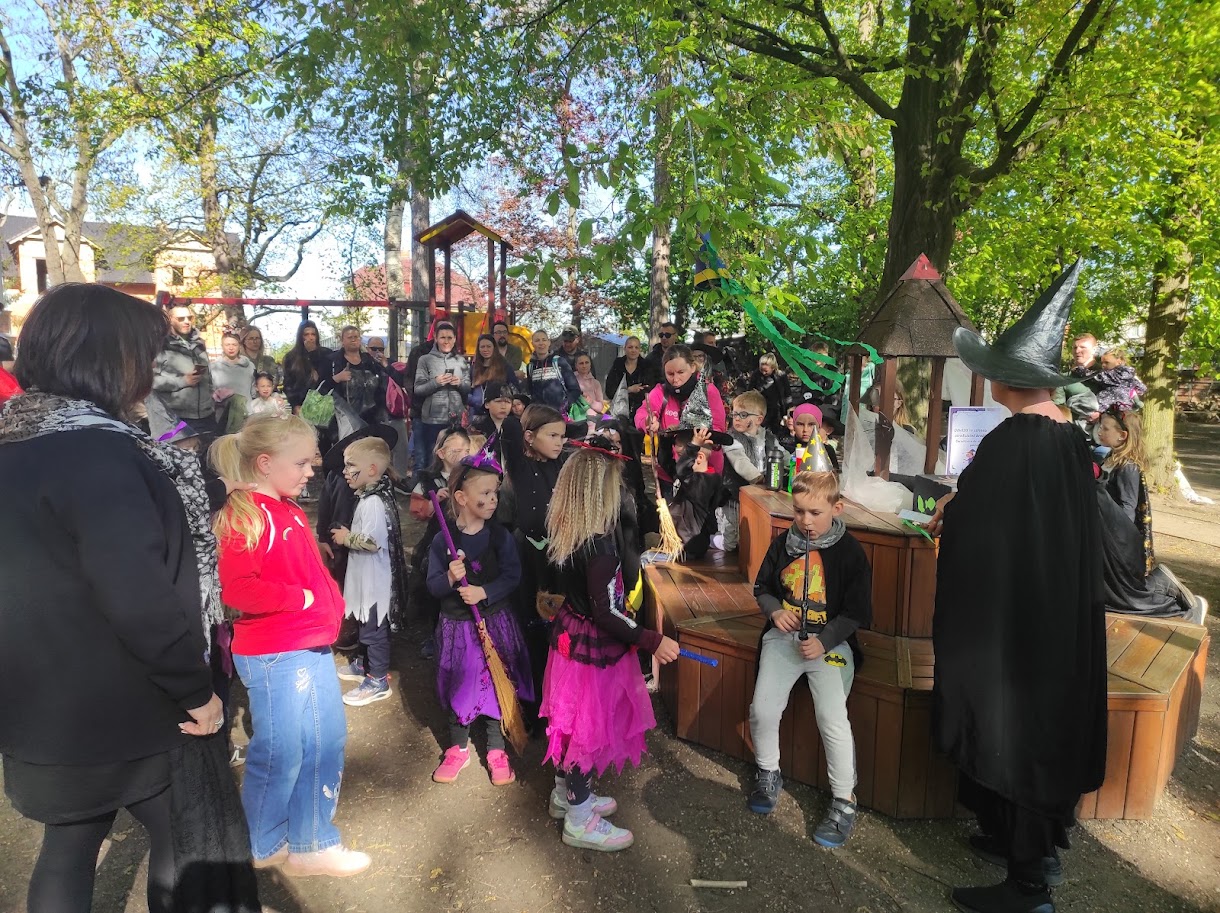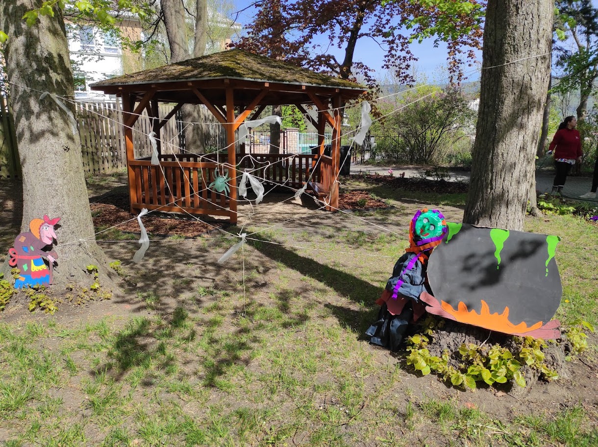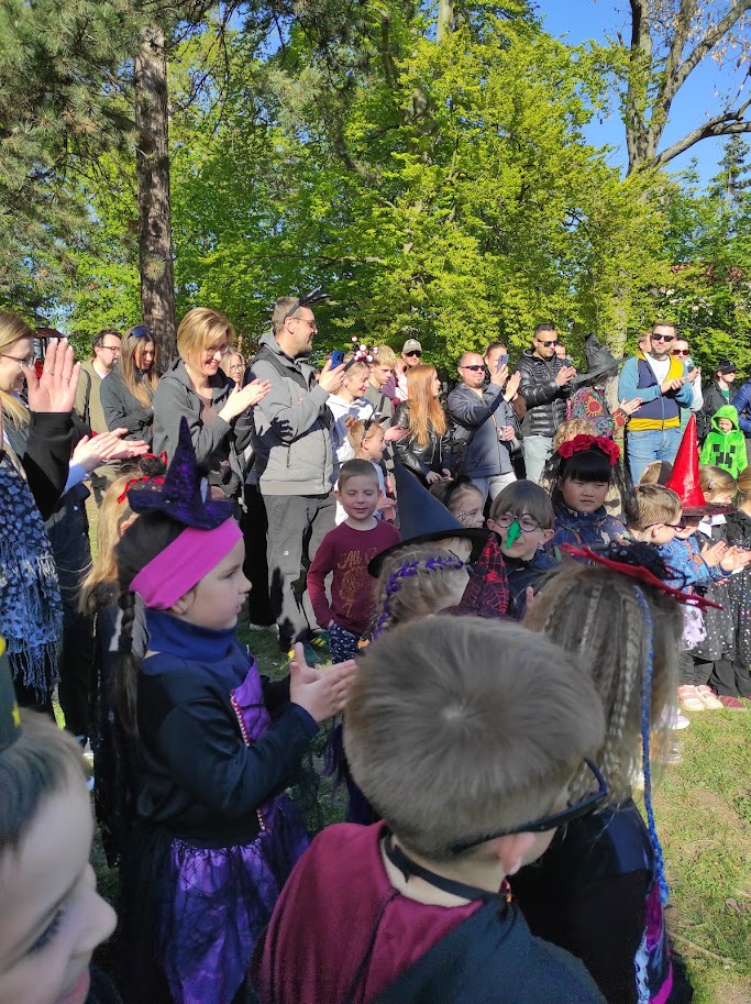 Dnešního odpoledne jsme na školní zahradě oslavili tradiční svátek Pálení čarodějnic. Rodiče i přátelé školky přicházeli společně s dětmi do tematicky vyzdobeného prostředí plného čarodějnických kulis, papírových koček, netopýrů a pavouků. Program byl zahájen symbolickým spálením papírové čarodějnice, která představovala odchod zimy a všeho zlého. Následně si děti společně zatančily a vydaly se k perníkové chaloupce, kde na ně čekala ježibaba. Po zazpívání písničky si děti mohly za odměnu odnést perníček. Poté již následovala volná zábava v podobě čarodějnických úkolů a stezky. Nechybělo ani tradiční opékání buřtů. Akce se velmi vydařila, těšila se hojné účasti a příjemnou atmosféru podpořilo i krásné slunečné počasí.