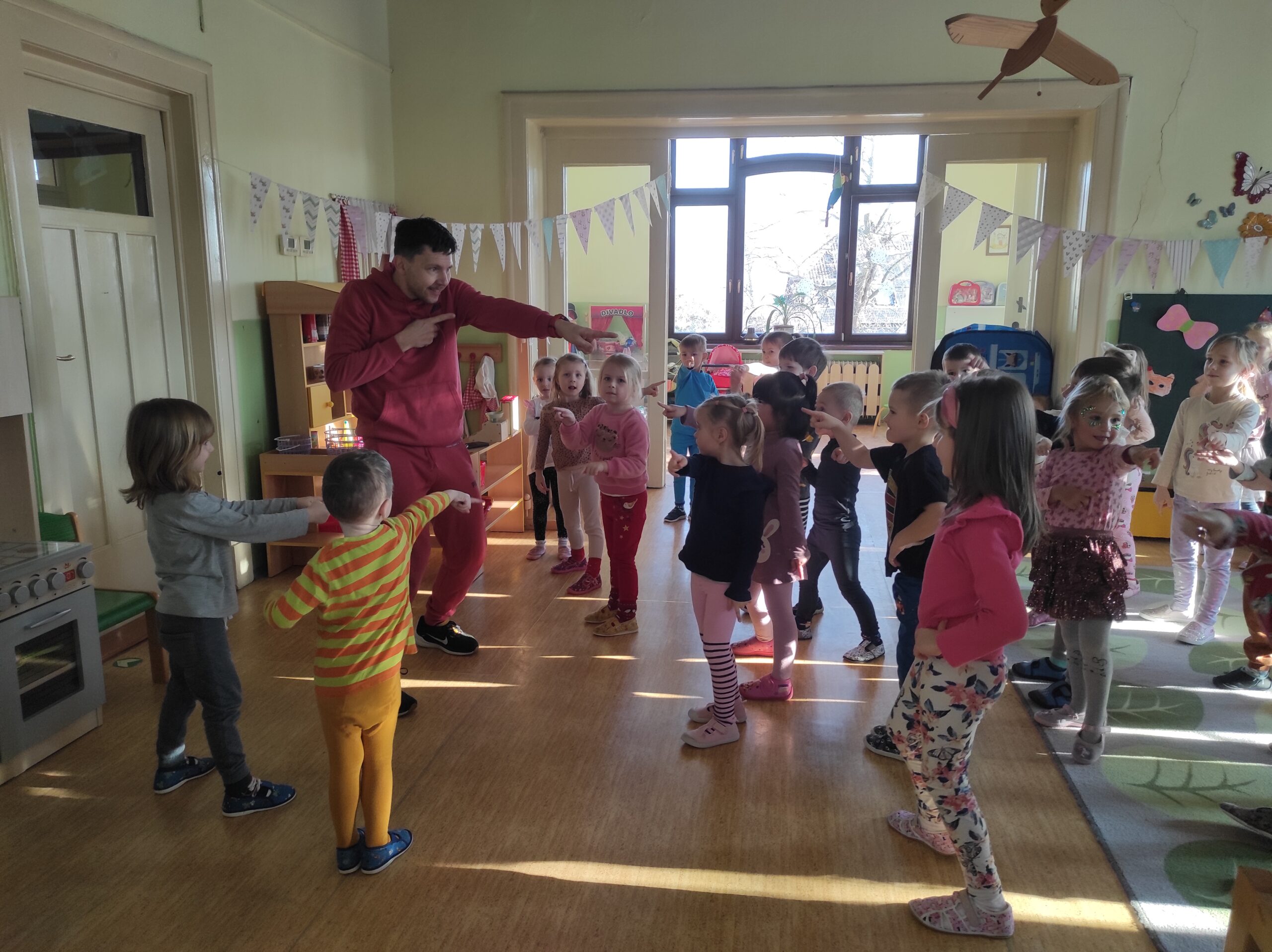 Dnes naši školku roztančil tanečník Kája z Prahy, který nás zábavnou formou naučil moderní taneční kreace. Všichni  jsme si pořádně protáhli tělo a užili si velkou legraci.